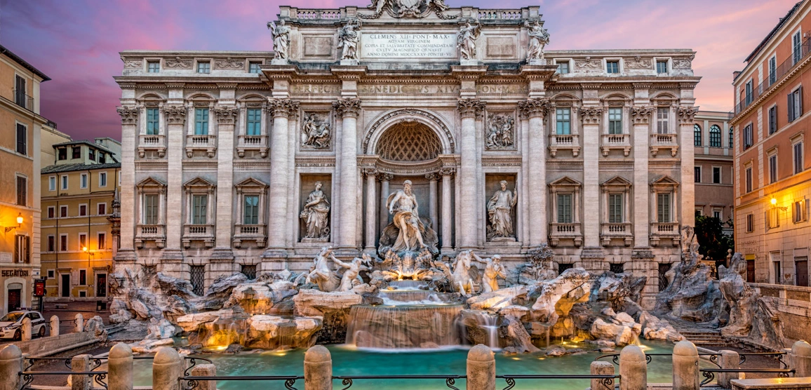 One of the most famous Baroque fountains in Italy, Trevi Fountain is where many believe the tradition of throwing a coin into the fountain assures your return to Rome.